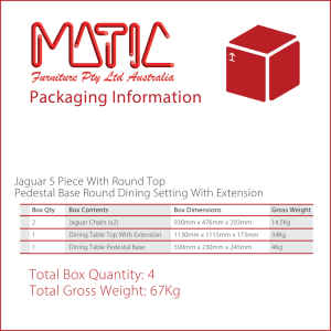 | 2 | Jaguar Chairs x2 | 930mm x 476mm x 293mm | 14.5Kg |