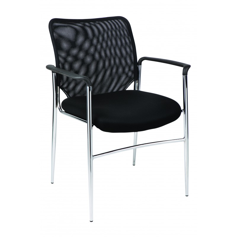 - Stackable fully welded steel frame in chrome finish