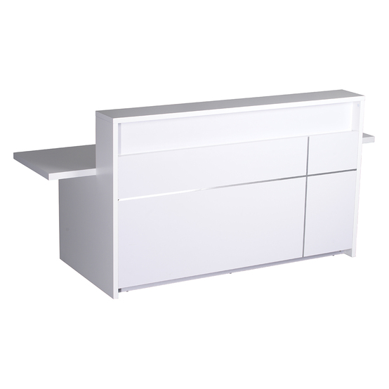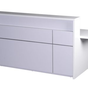 The 5-0 Counter sits perfectly in a modern Reception area, gloss white all over with a chrome trim on the front panel.