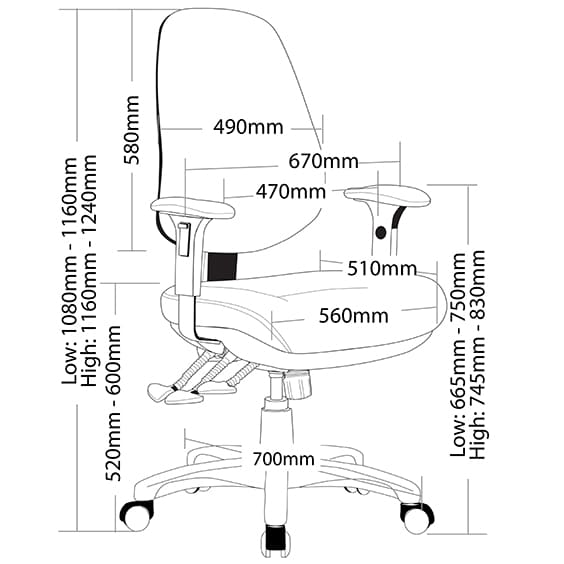 - Adjustable back height (ratchet)
